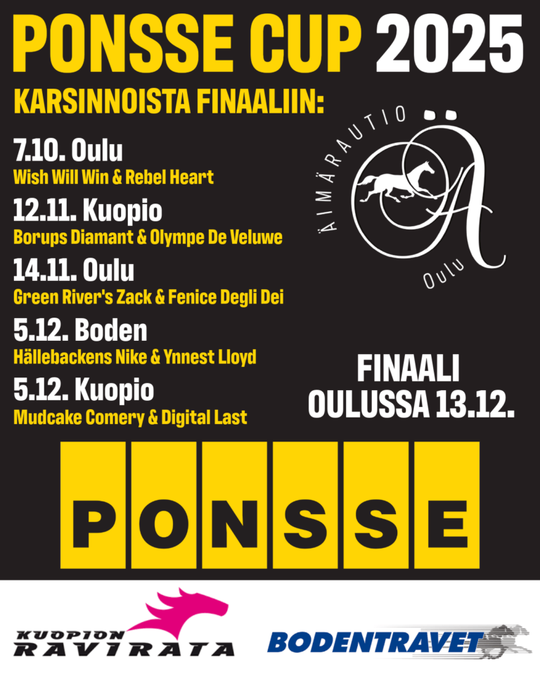 Ponsse Cupin karsintoja ajettiin Oulussa, Bodenissa ja Kuopiossa loka-, marras- ja joulukuussa. Finaali on ohjelmassa Oulussa lauantaina 13. joulukuuta.