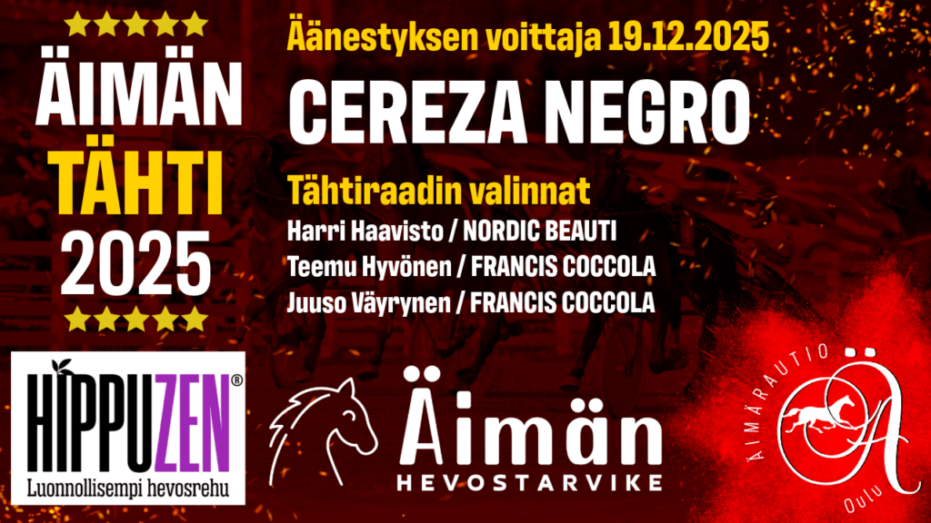 Äimäraution kauden päätösravit ravattiin perjantai-iltana. Janita Luttunen ja Juhani Harmoinen olivat illan ykkösnimet, molempien valmennettavat ottivat kaksi voittoa. Luttusen suojateista kärkisijoille pinkoivat Nordic Beauti sekä Francis Coccola. Jälkimmäisen ohjastaja Ville Pohjola nousi täysosuman myötä Äimäraution ohjastajaliigassa kärkeen ja kuittasi liigan voiton ensimmäistä kertaa urallaan. Harmoisen tallin voittohevoset olivat Jullen Emil ja Missin Valma. Illan muut voittajat olivat Eini, Tough Eddy, Corsa Remarkable ja Cereza Negro sekä ponilähdön voittanut Cicciolina K.