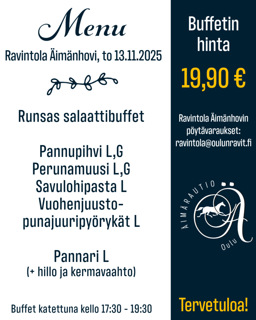 Pöytävaraukset osoitteesta ravintola@oulunravit.fi. Tervetuloa!